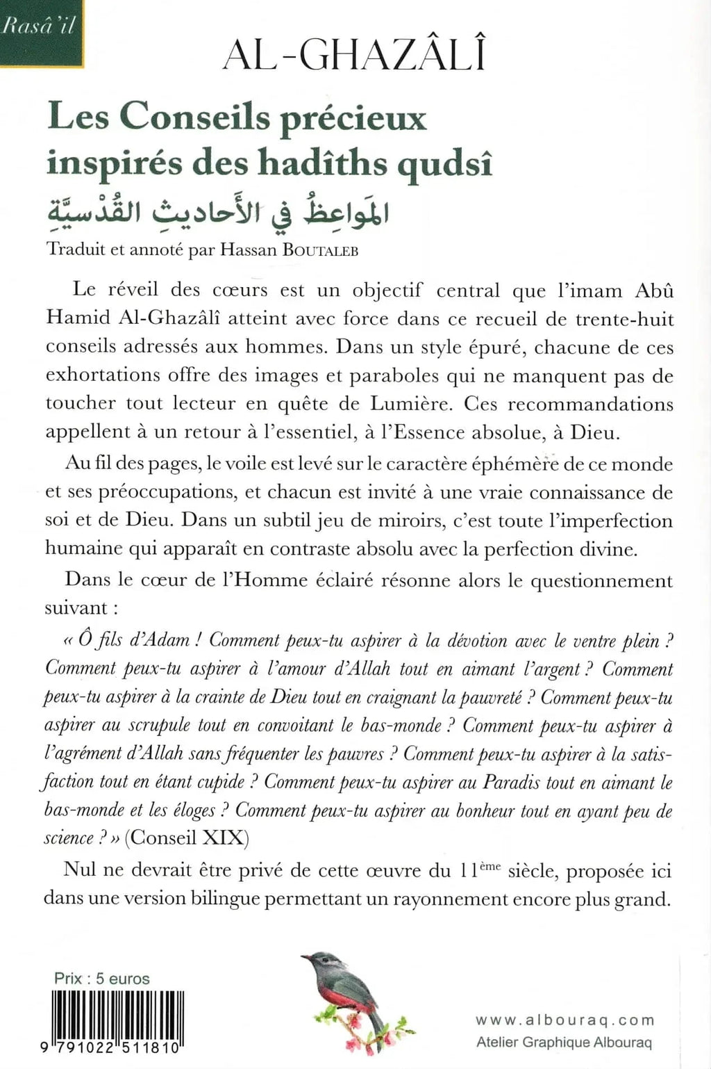 Les conseils précieux…(Bilingue/Poche) par Abu Hamid Al-Ghazali de ghazali, publié aux éditions Al Bouraq.